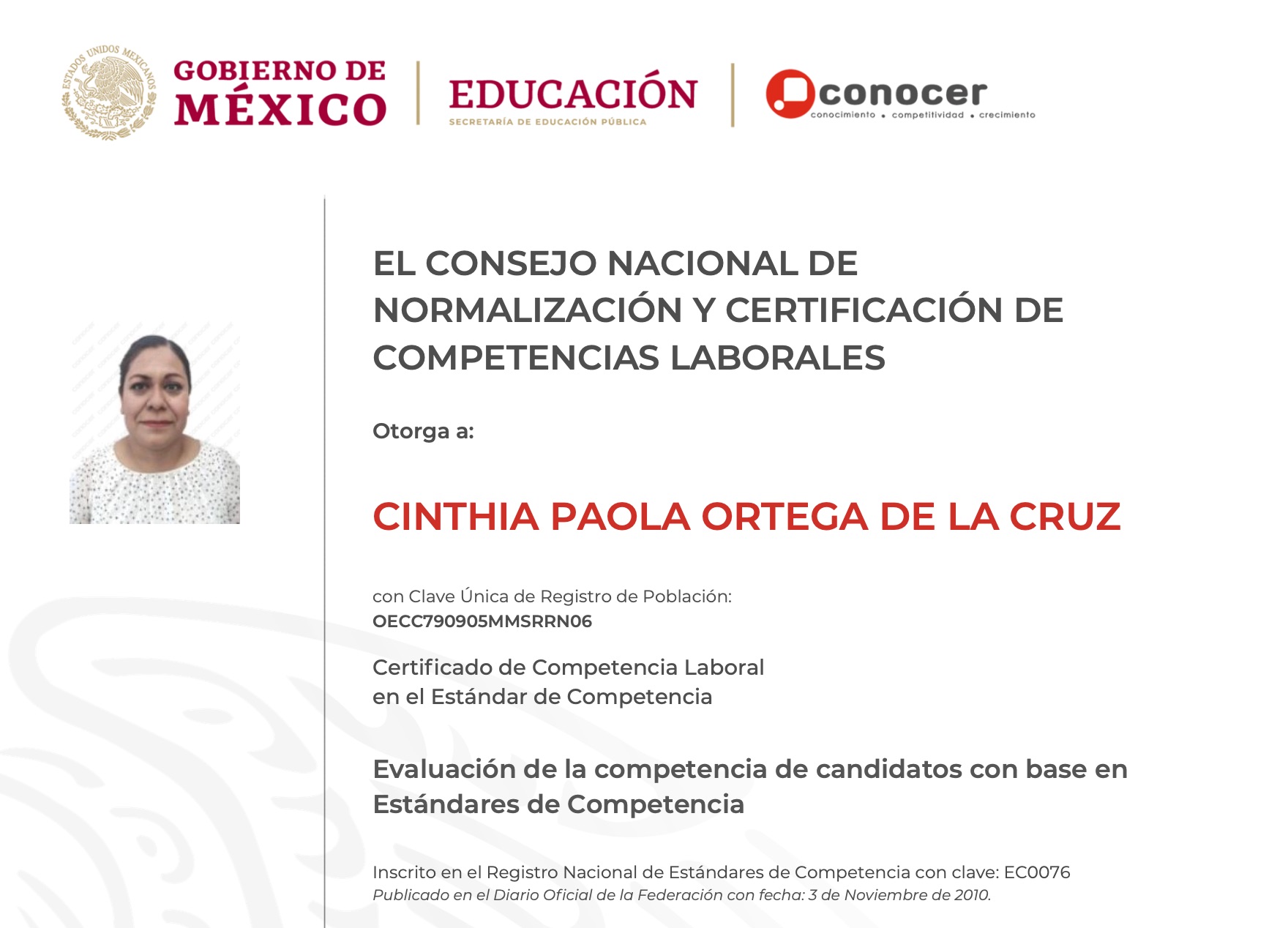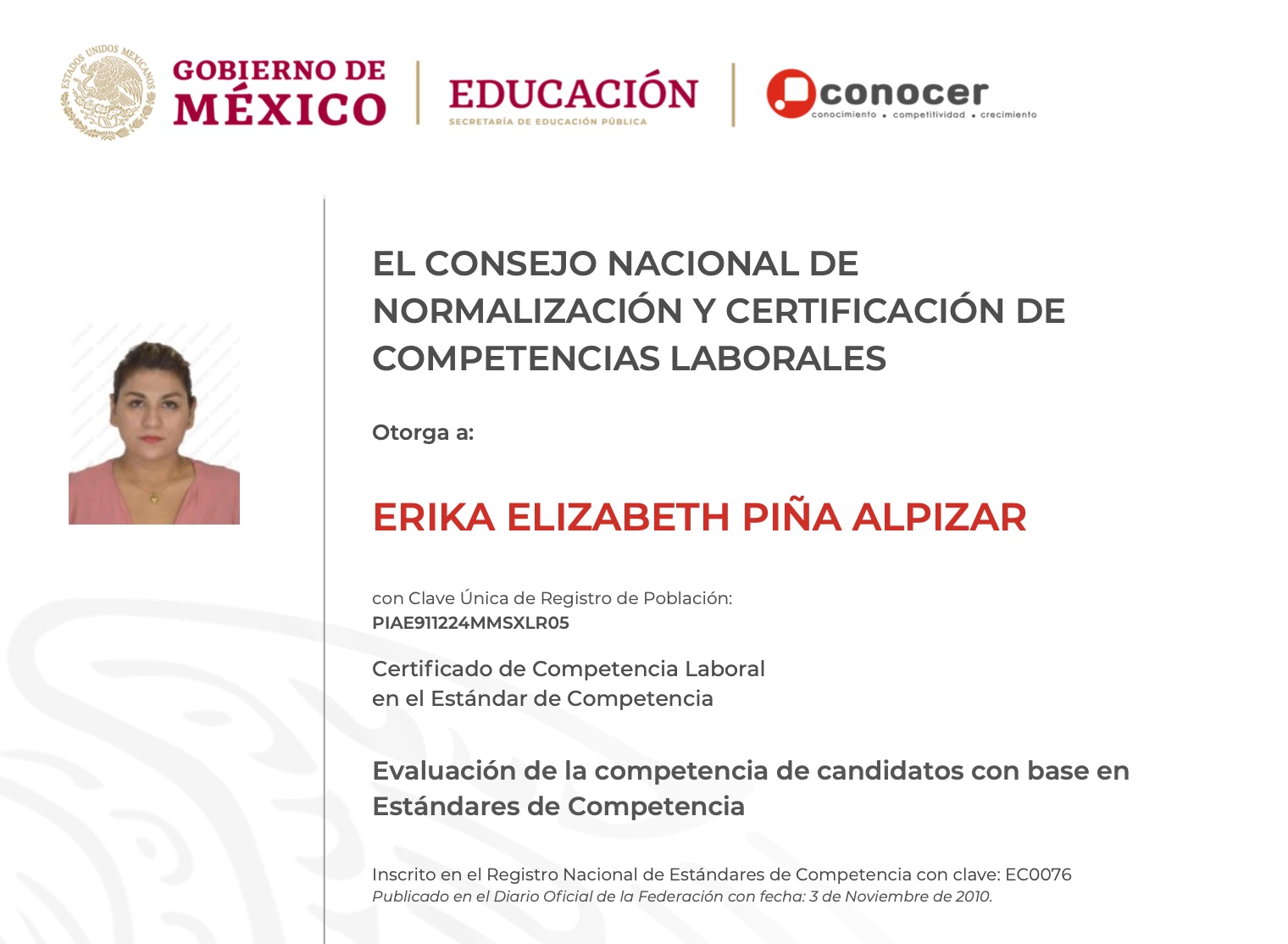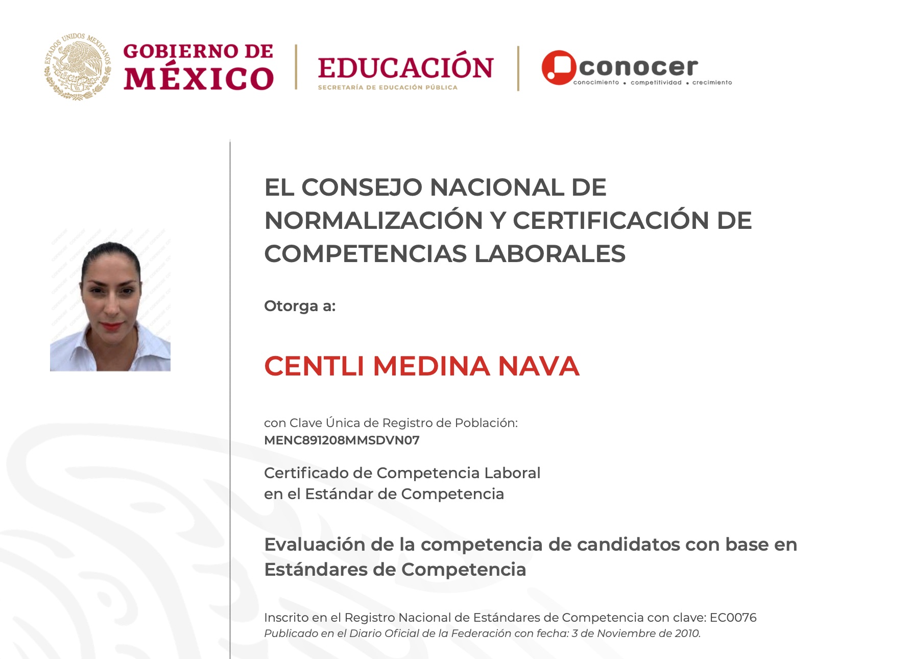 Al certificarte estás contribuyendo a mejorar tu desarrollo personal y profesional: te conviertes en un trabajador con mayores oportunidades para competir en un mercado laboral exigente y complejo pues cada día son más las empresas de nuestro país que requieren trabajadores con experiencias, saberes, habilidades y destrezas certificadas, capaces de cumplir exitosamente con las funciones que se les encomienda. Un certificado de competencia reconoce el saber hacer de una persona independientemente de la forma en que se haya adquirido el saber, el saber hacer y el ser. El certificado de competencia es un documento oficial donde se acredita a una persona como competente de acuerdo a lo establecido en un estándar de competencia, y se encuentra en el registro nacional de estándares de competencia.