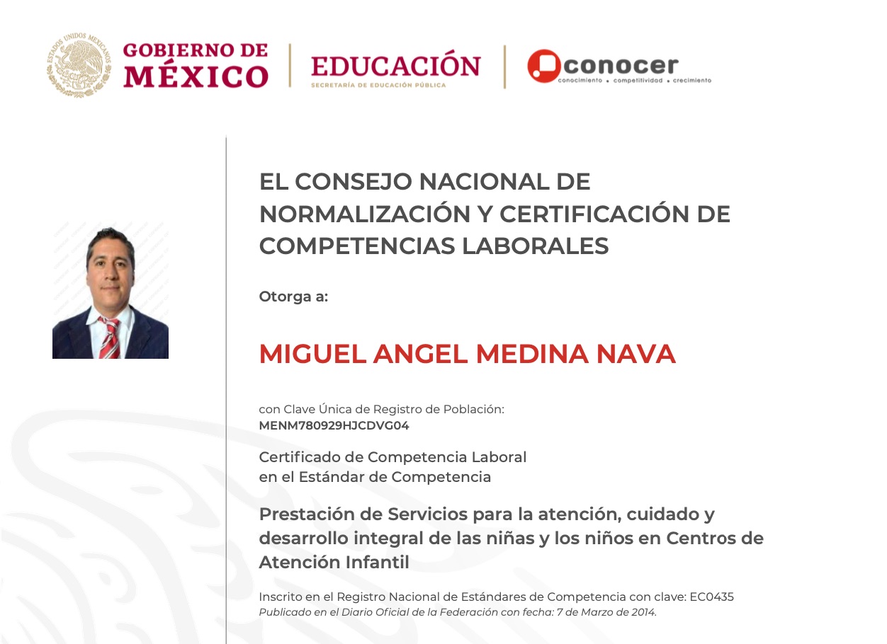 EC0335 Ficha CompletaEste estándar de competencia está enfocado a personas que deban contar con conocimientos, habilidades, destrezas y actitudes para desempeñarse en centro de atención infantil, atendiendo y cuidando a niñas y niños de edad lactante, maternal y preescolar, considerando la preparación de las áreas donde se llevarán a cabo las actividades, asistiendo en higiene, arreglo personal, cambio de pañal, alimentación y sueño/descanso, en general en su desarrollo integral.